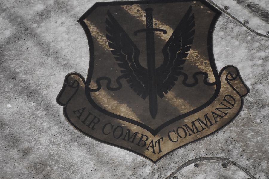 The logo of U.S. Air Combat Command on the wreckage of the crashed plane in Deh Yak district of Ghazni province, Afghanistan, Jan. 27, 2020. (Photo by Saifullah/Xinhua)