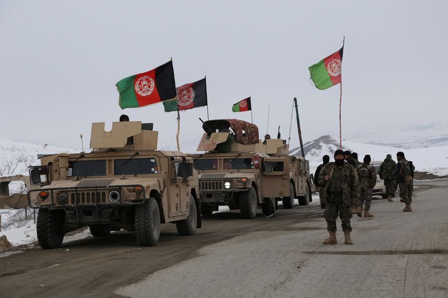 Afghan security forces head to the site of a plane crash in Deh Yak district of Ghazni province, Afghanistan, Jan. 27, 2020. (Photo by Sayed Mominzadah/Xinhua)