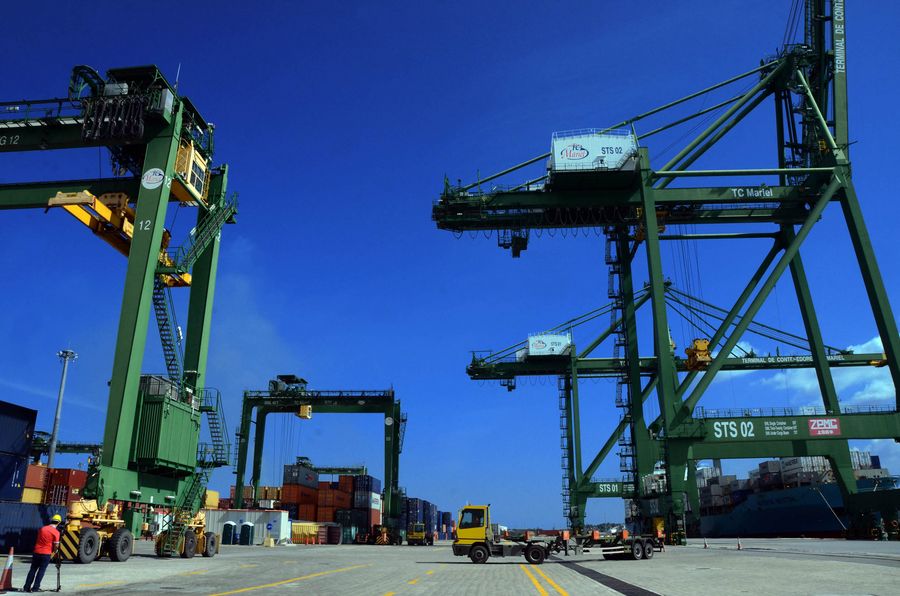 Photo taken on Feb. 6, 2017 shows the container terminal at Mariel Special Economic Development Zone (ZEDM), some 45 km west of Havana, Cuba. (Xinhua/Joaquin Hernandez)