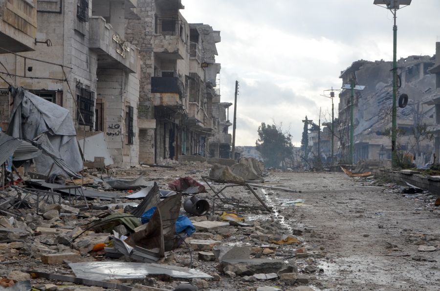 Muhammad Basmeh, a Syrian soldier, jammed his hands in his pocket from the cold wind and said he was happy to be able to take part in liberating the city from the rebel groups. He wished for a quick return of the residents to their homes.
