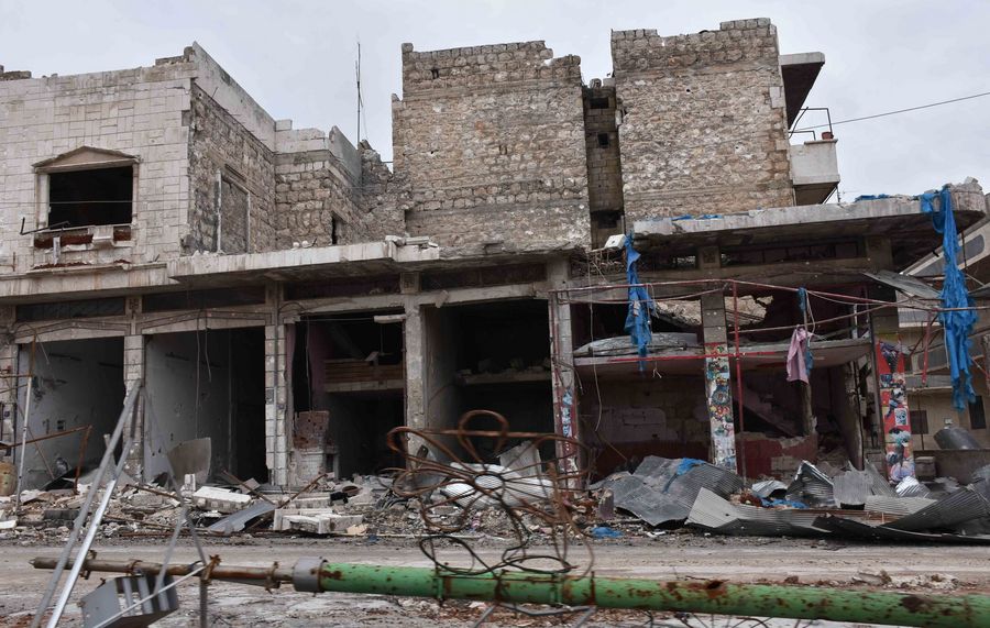 Destruction is seen in Maarat al-Numan, the second-largest city in Idlib Province in northwestern Syria, on Jan. 30, 2020. (Xinhua/Maher)