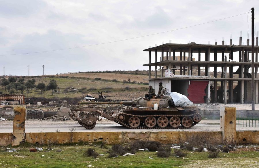 A tank of Syrian army is seen in Maarat al-Numan, Idlib Province, Syria, on Jan. 29, 2020. (Xinhua/Str)
