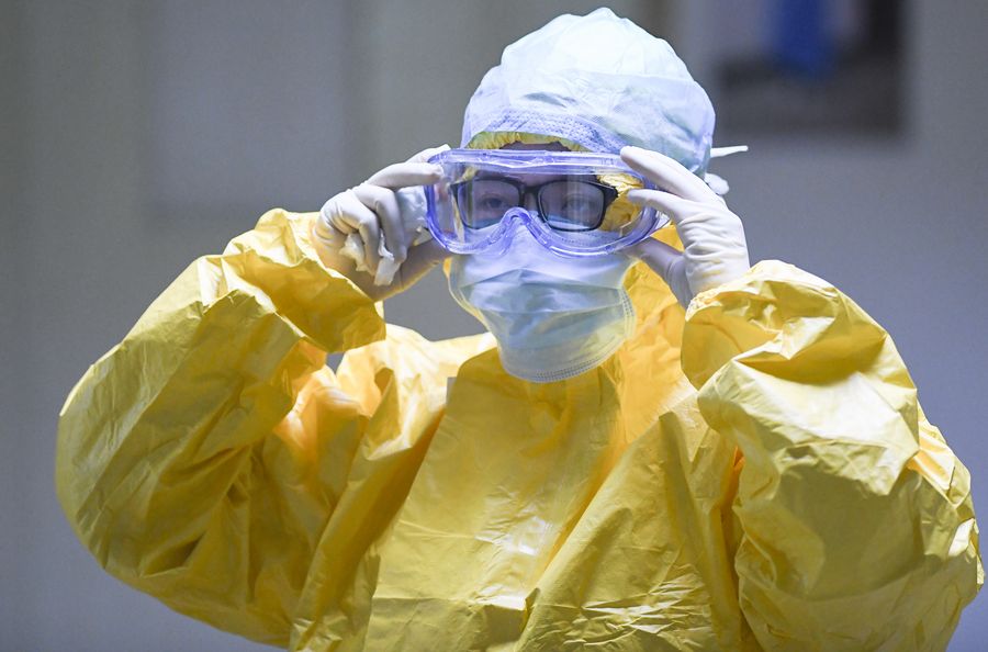 A medical worker prepares to enter the isolation wards of severe pneumonia inpatients at a hospital in southwest China's Chongqing, Feb. 1, 2020. (Xinhua/Wang Quanchao)