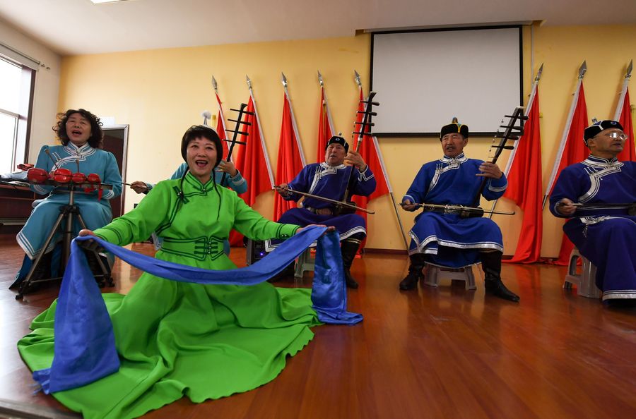 Members of a musical team perform at a local community in Horqin Youyi Zhongqi, north China's Inner Mongolia Autonomous Region, Nov. 17, 2019. (Xinhua/Peng Yuan)