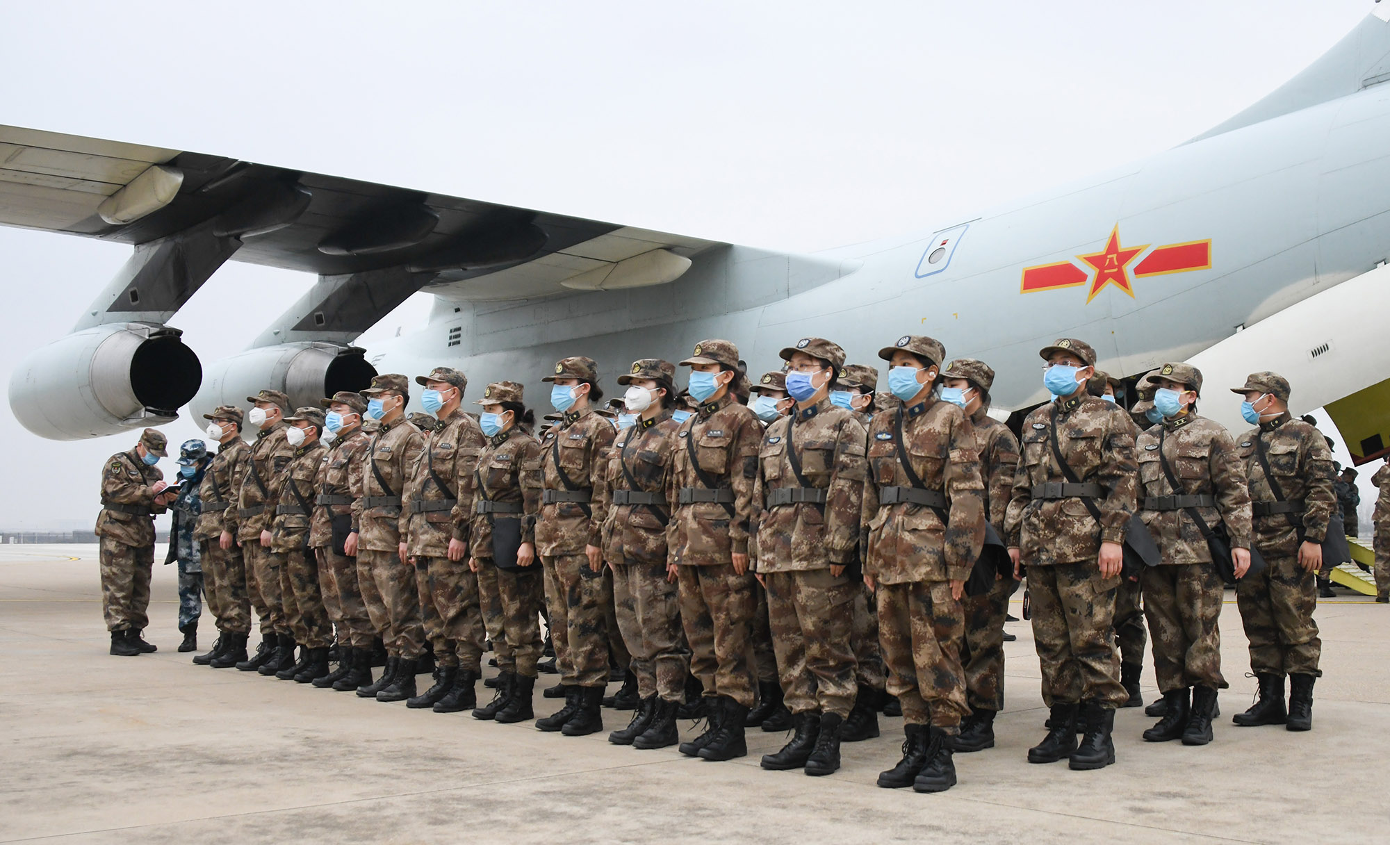 Military medical staff airlifted by eight large transport planes of the air force of the People's Liberation Army (PLA) arrive at Tianhe International Airport in Wuhan, central China's Hubei Province, Feb. 2, 2020. (Xinhua/Cheng Min)