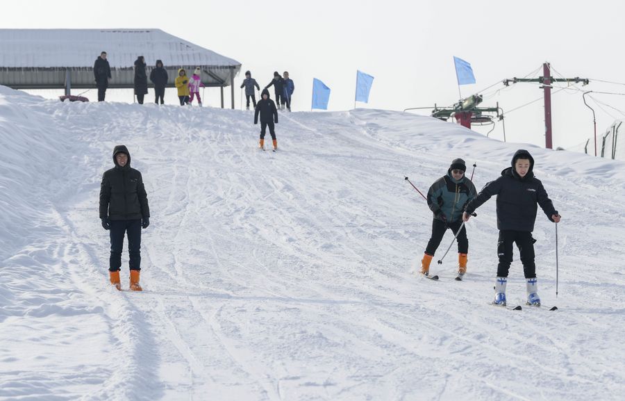 People ski at a ski resort in Tacheng, northwest China's Xinjiang Uygur Autonomous Region, Jan. 22, 2020. (Xinhua/Zhao Ge)