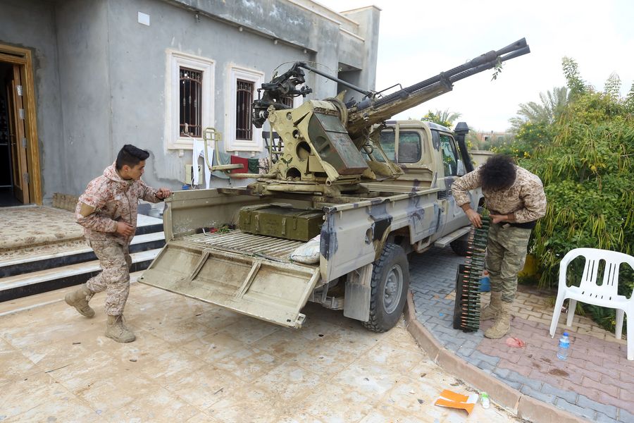 Fighters of UN-backed government forces are seen in Southern Tripoli, Libya, on Jan. 12, 2020. (Photo by Hamza Turkia/Xinhua)