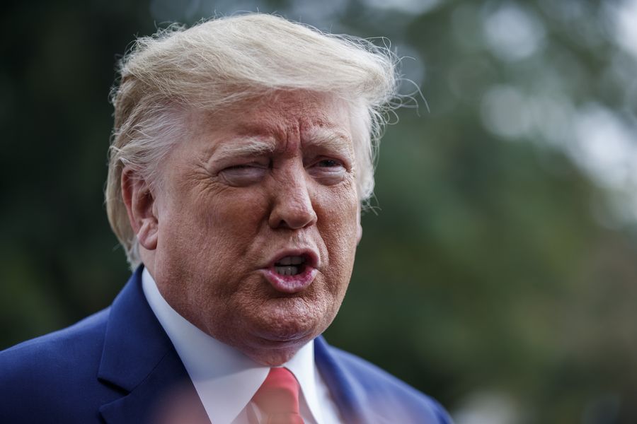 U.S. President Donald Trump speaks to reporters before leaving the White House in Washington D.C., the United States, on Oct. 25, 2019. (Ting Shen/Xinhua)
