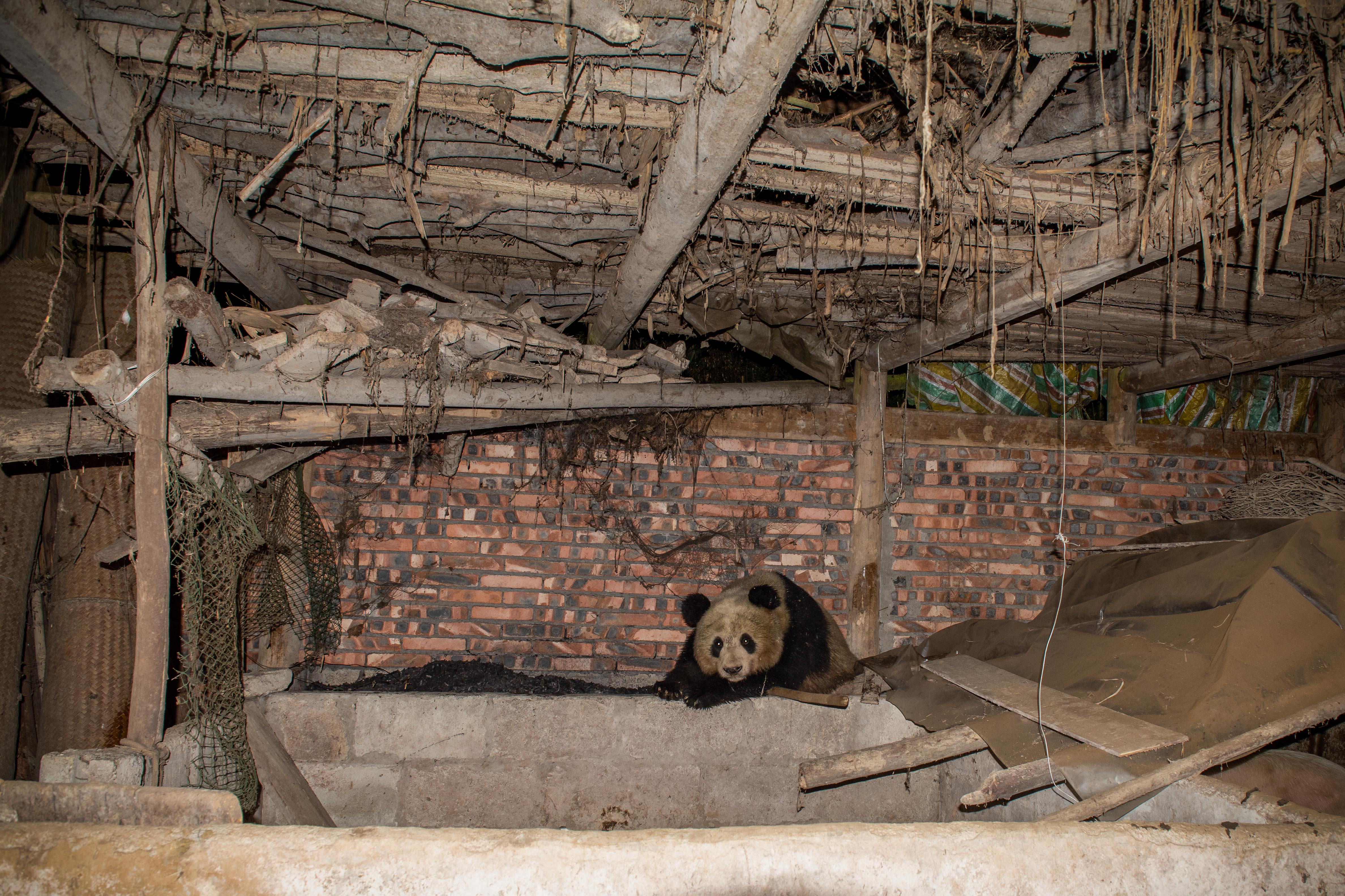 The panda stays in villager Li Guanglin's pigsty outside his house in Jianlian Village of Lingguan Township, Baoxing County, southwest China's Sichuan Province, Feb. 5, 2020. (Photo by Zhang Hua/Xinhua)