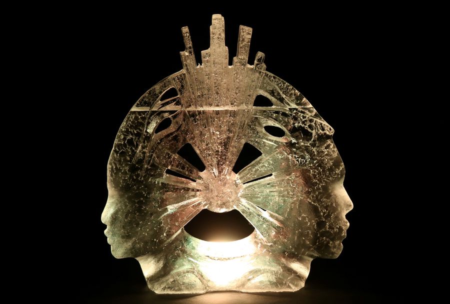Photo taken on Feb. 7, 2020 shows an ice sculpture during the 22nd International Ice Sculpture Festival in Jelgava, Latvia.(Photo by Edijs Palens/Xinhua)■