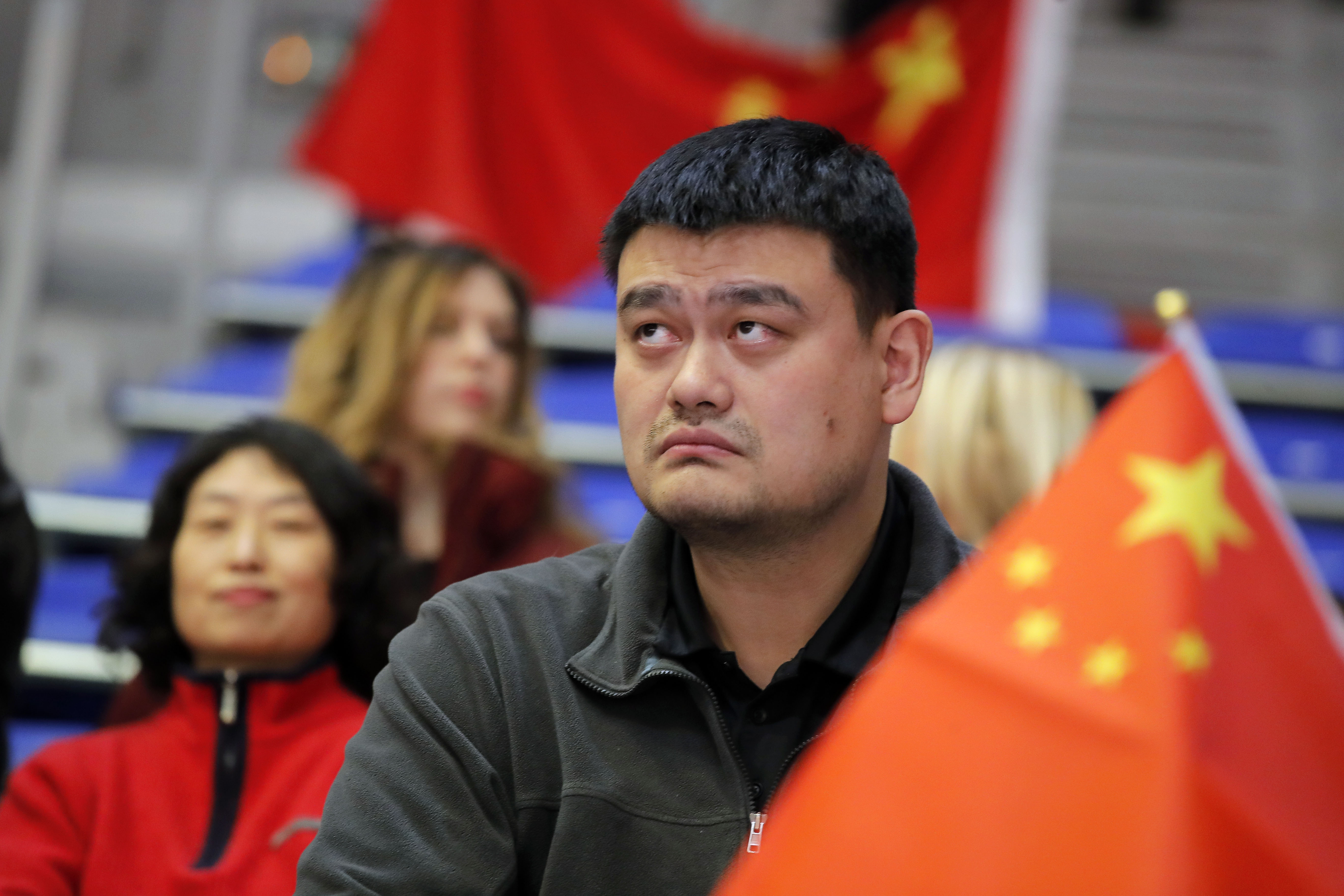 Yao Ming, president of the Chinese Basketball Association, witnessed the qualification of the national women's team on the courtside. (Xinhua/Shi Zhongyu)