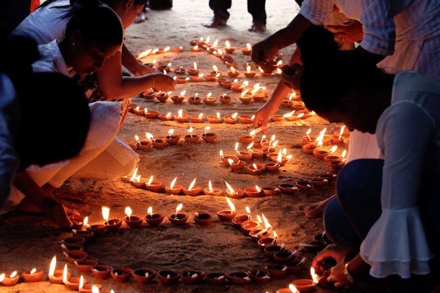 Local residents hold a vigil to express solidarity with China in the efforts to battle the novel coronavirus outbreak in Colombo, Sri Lanka, Feb. 1, 2020. (Photo by Ajith Perera/Xinhua)