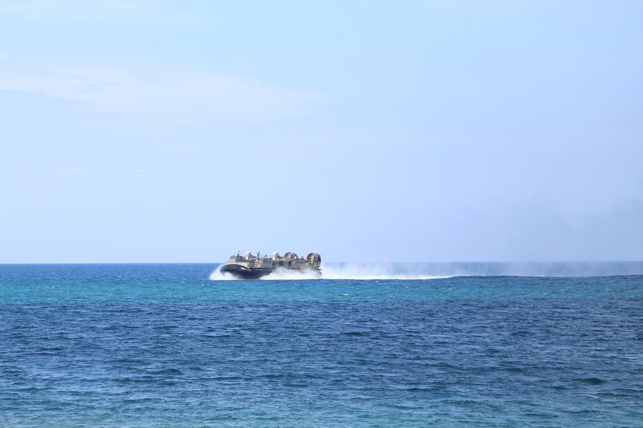 A U.S. Marines Landing Craft Air Cushion hovercraft participates in a landing exercise as part of the Philipines-U.S. Balikatan 2019 in Zambales Province, the Philippines, April 11, 2019. (Xinhua/Yuan Mengchen)