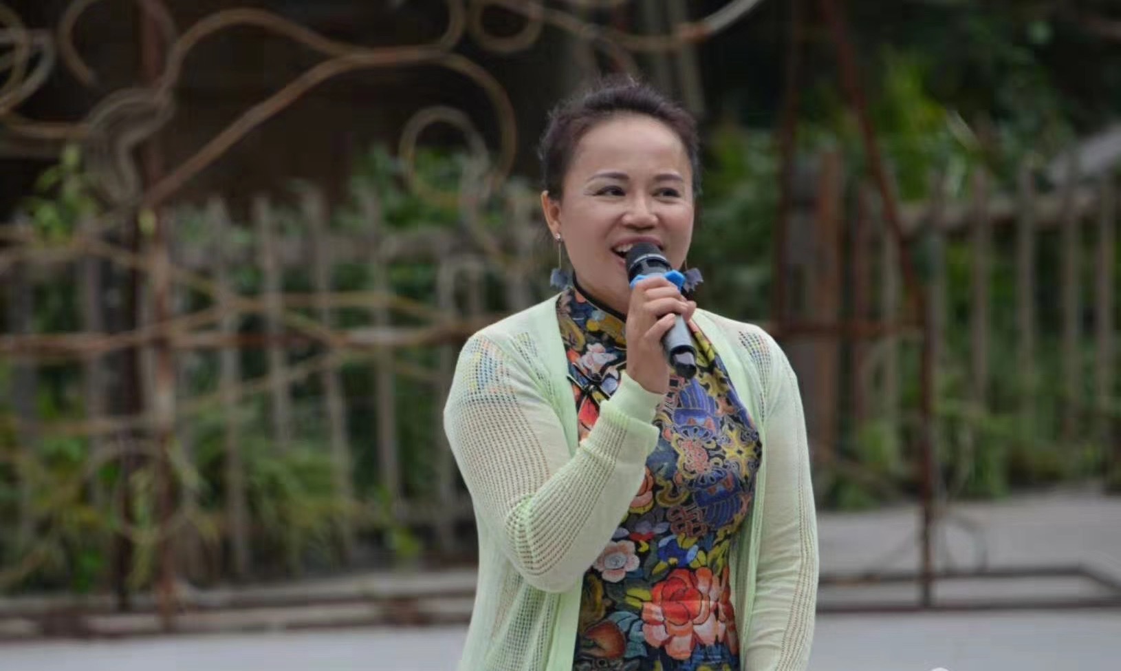 Pan Hongmei, a local celebrity singer in Luolou Village in south China's Guangxi Zhuang Autonomous Region, is singing a folk song. (Photo provided by Pan Hongmei)