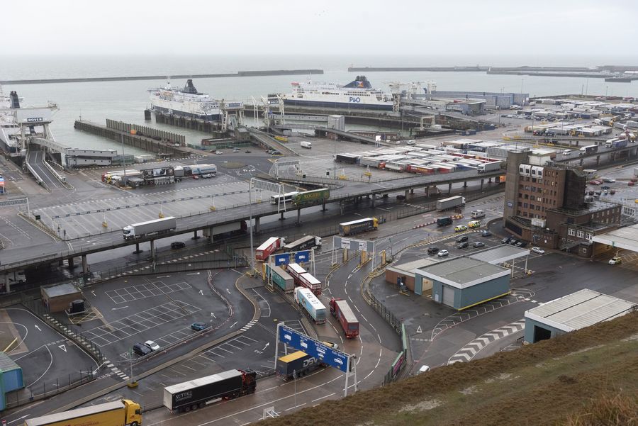 Photo taken on Feb. 1, 2020 shows the Port of Dover on the first day after Brexit in Dover, Britain.(Photo by Ray Tang/Xinhua)