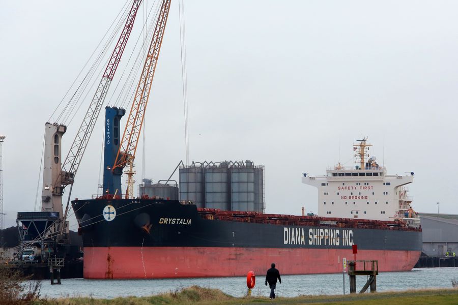 A ship docked at Belfast Harbour in Belfast, Northern Ireland, Britain on Feb. 1, 2020.(Photo by Paul McErlane/Xinhua)