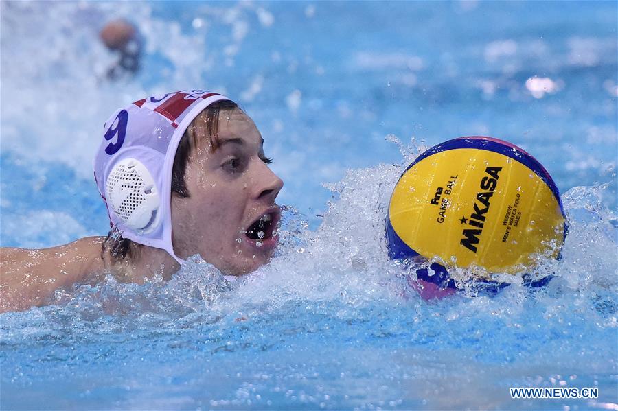Lovre Milos of Croatia competes during the World League European Preliminaries Group C water polo match between Croatia and the Netherlands in Varazdin, Croatia, Feb. 11, 2020. (Vjeran Zganec Rogulja/Pixsell via Xinhua)