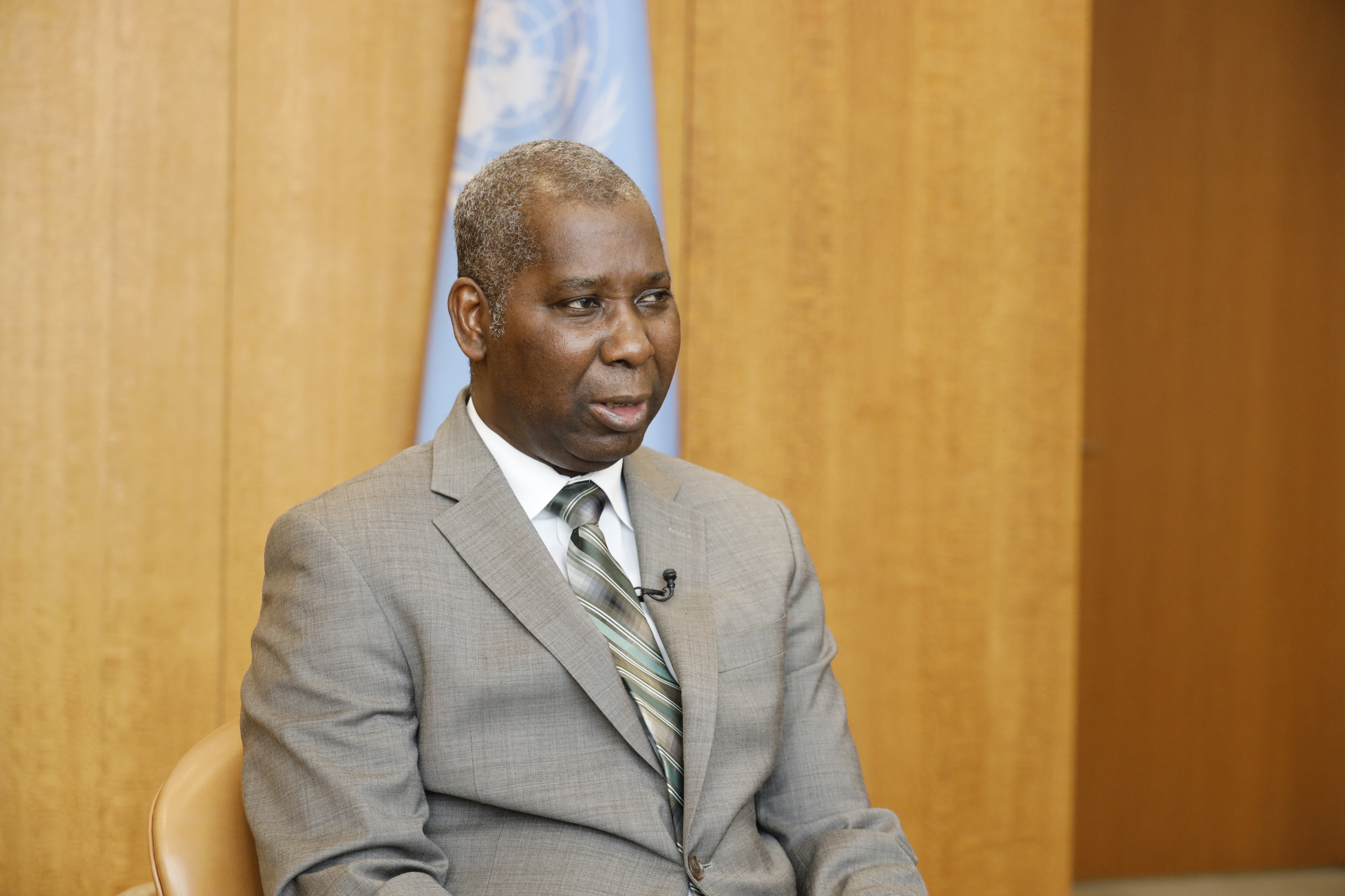 UN General Assembly (UNGA) President Tijjani Muhammad-Bande receives an exclusive interview with Xinhua at the UN headquarters in New York, Jan. 23, 2020. (Xinhua/Zhang Mocheng)