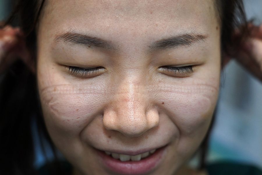 Marks for heroes: front line health workers are left with sore marks on face due to wearing of masks or goggles after countless hours fighting the novel coronavirus in east China's Nanchang.