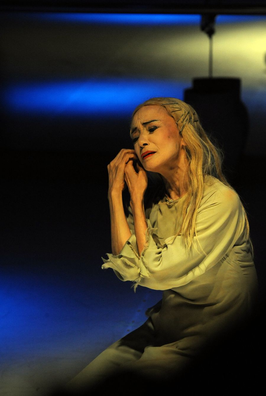 Yoko Morishita (1st L), 69, director of Japan's Matsuyama Ballet Troupe, performs during the ballet "White-haired Girl," a ballet adapted from the Chinese opera of the same name, at the Great Hall of the People in Beijing, capital of China, May 19, 2017. (Xinhua/Jin Liangkuai)