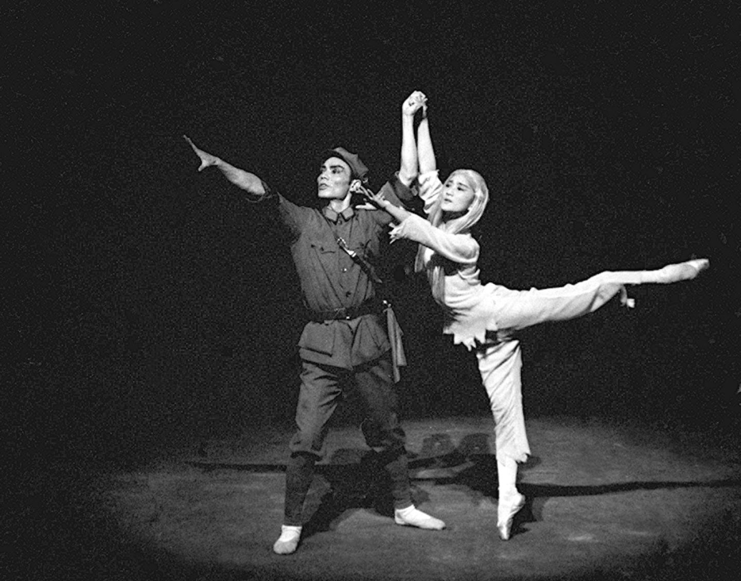 A file photo shows dancers of Matsuyama Ballet Troupe performing "White-haired Girl" in China, 1971. (Xinhua/Guo Zhanying)