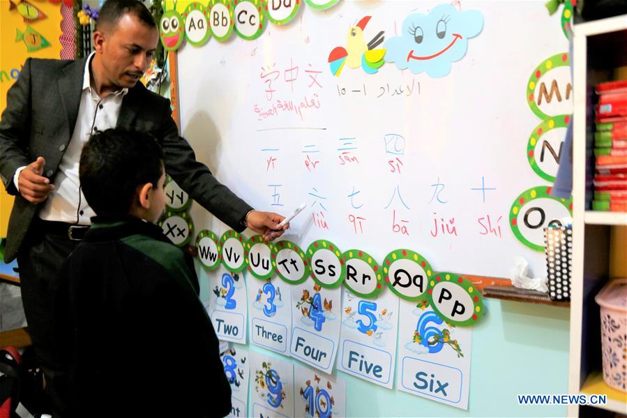 SANAA, Feb. 13 (Xinhua) -- A Chinese song echoed in a classroom in Sanaa, the capital of war-torn Yemen, where around 20 Chinese-learning schoolchildren were singing.