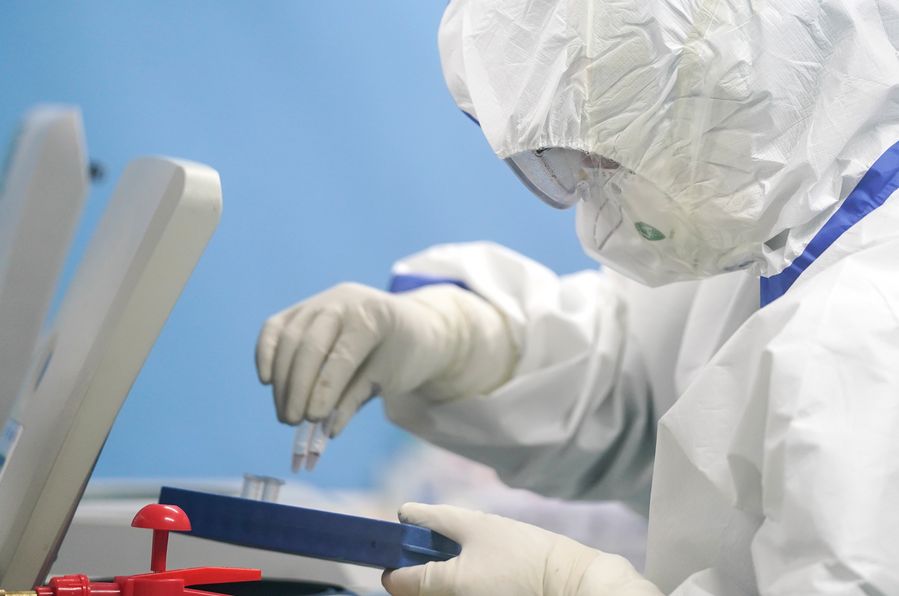A staff member works in a laboratory in Wuhan, central China's Hubei Province, Feb. 13, 2020. (Xinhua/Cheng Min)