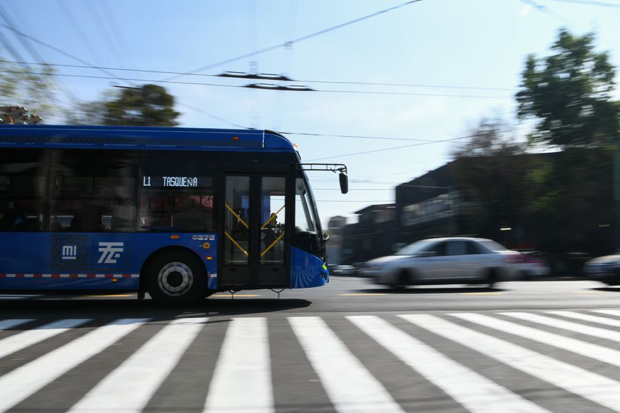 A trolley bus manufactured by Chinese company Yutong runs in Mexico City, Mexico, on Jan. 17, 2020. (Xinhua/Xin Yuewei)