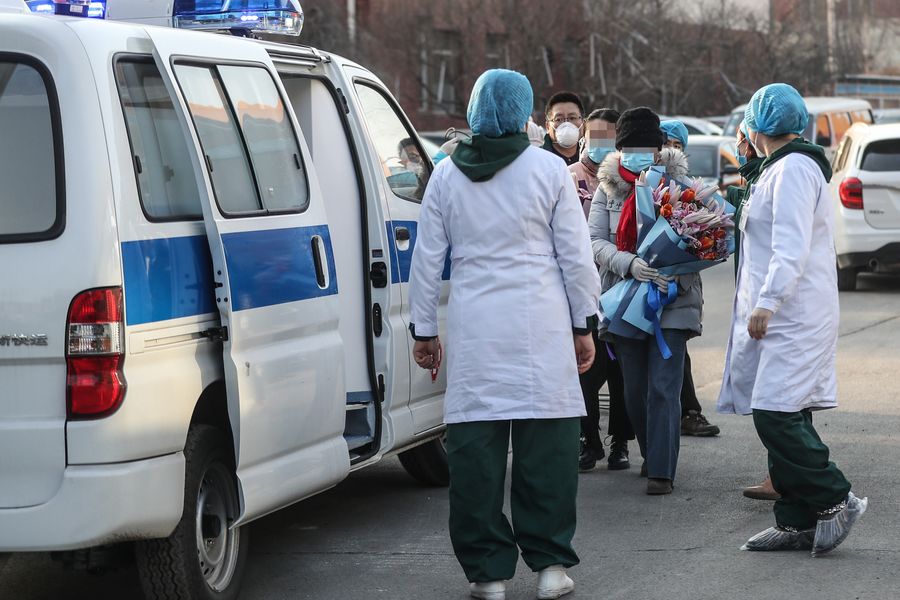 Cured patients prepare to leave the Sixth People's Hospital of Shenyang in Shenyang, northeast China's Liaoning Province, Feb. 9, 2020. (Xinhua/Pan Yulong)