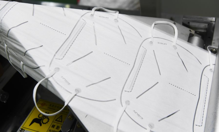 Medical N95 masks on a production line of a mask production company in southwest China's Chongqing, Feb. 17, 2020. (Xinhua/Wang Quanchao)