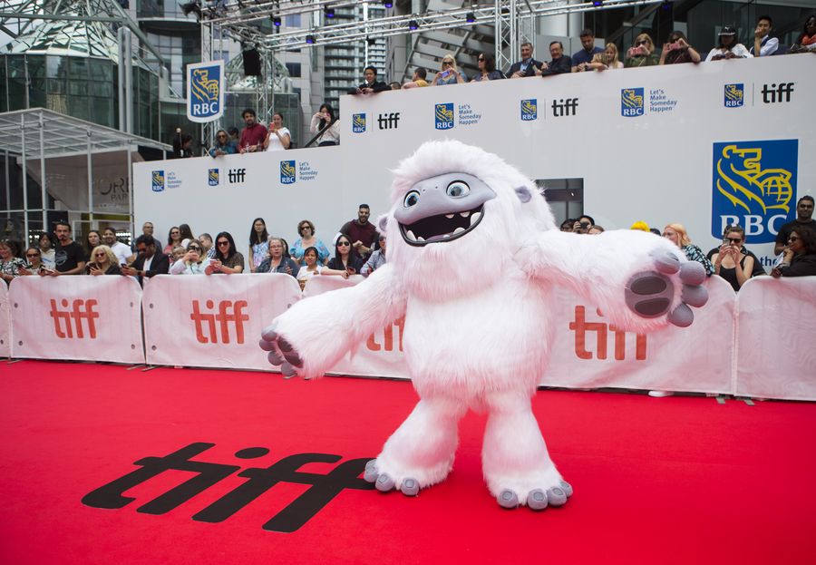 Costumed Yeti poses for photos before the world premiere of the film "Abominable" during the 2019 Toronto International Film Festival (TIFF) in Toronto, Canada, on Sept. 7, 2019. (Photo by Zou Zheng/Xinhua)