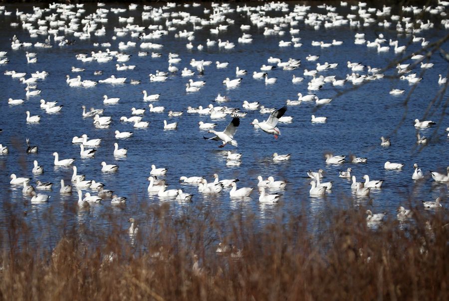 Snow geese are seen at the Middle Creek Wildlife Management Area in Lancaster County, Pennsylvania, the United States, on Feb. 22, 2020. (Xinhua/Qin Lang)