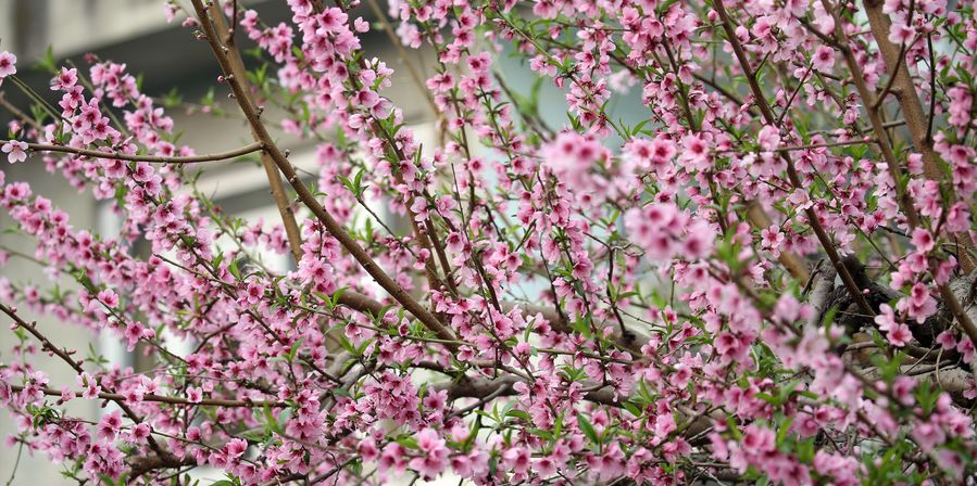Photo taken on Feb. 23, 2020 shows flowering cherry blossoms in a garden in Kathmandu, Nepal. (Photo by Sunil Sharma/Xinhua)■