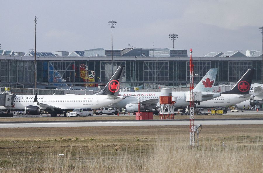Planes that belong to Air Canada are seen at Vancouver International Airport in Richmond, Vancouver, Canada, March 13, 2019. (Xinhua/Liang Sen)