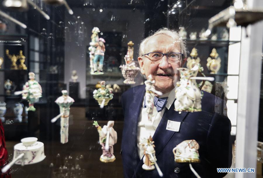 A visitor views exhibits during the press preview of the Galleries for British Decorative Arts and Design in the Metropolitan Museum of Art in New York, the United States, Feb. 24, 2020. The Galleries for British Decorative Arts and Design in New York's Metropolitan Museum of Art (The Met) will reopen to the public on March 2, according to a press preview on Monday. (Xinhua/Wang Ying)