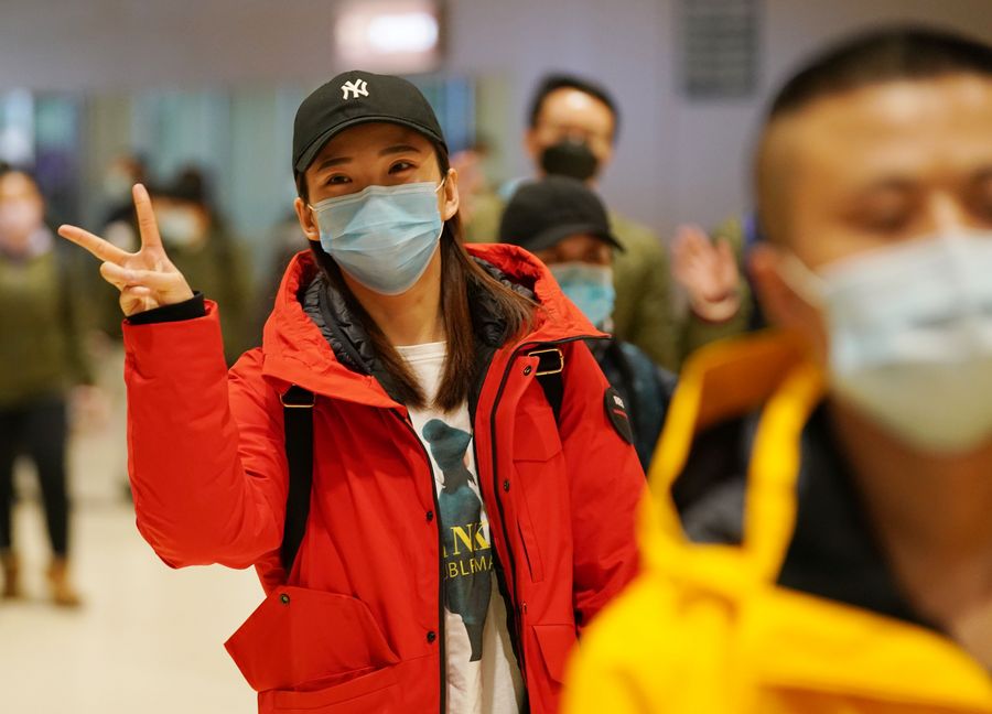 A medical team member gets ready to set off at the Harbin Taiping International Airport in Harbin, northeast China's Heilongjiang Province, Feb. 23, 2020. (Xinhua/Wang Jianwei)