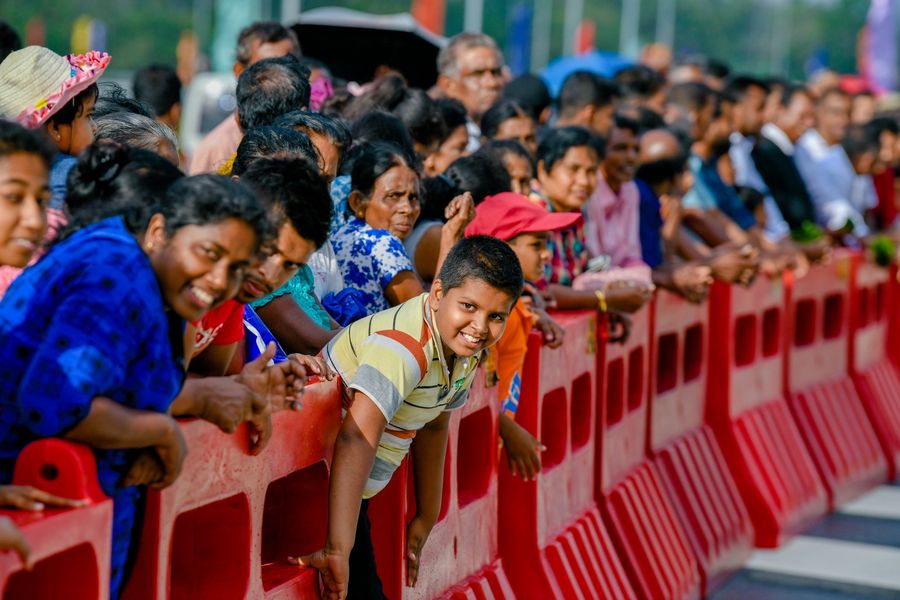 Local residents attend a public rally to wait for the official opening of the extension of Southern Expressway that will link the country's main ports and airports near Barawakumbuka, Sri Lanka, Feb. 23, 2020. (Xinhua)