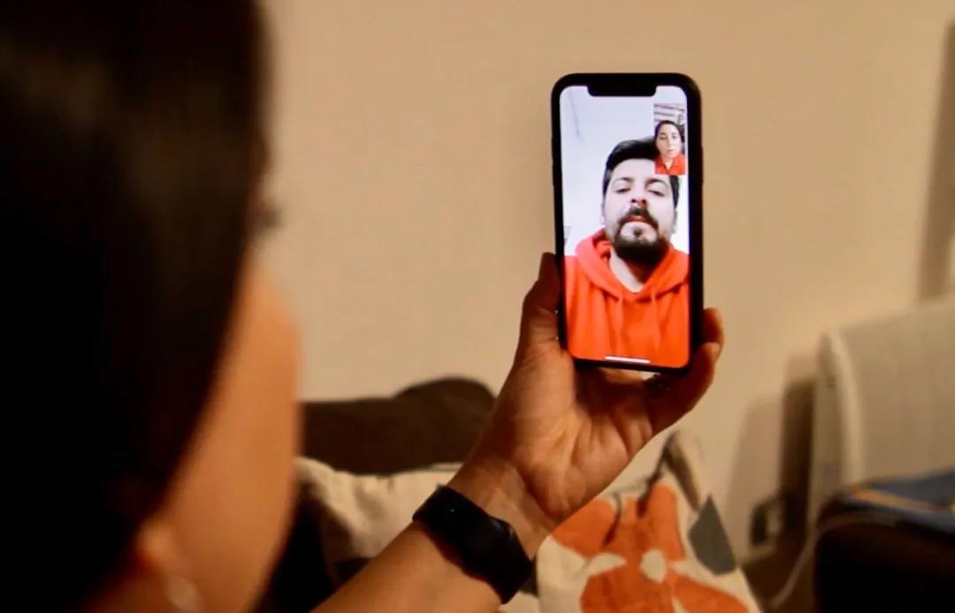 This photo shows Sofia Pradenas, living in Santiago, capital of Chile, making a video call to her brother Cristian Pradenas, who lives in Wuhan, China on Feb. 19, 2020. (Xinhua)