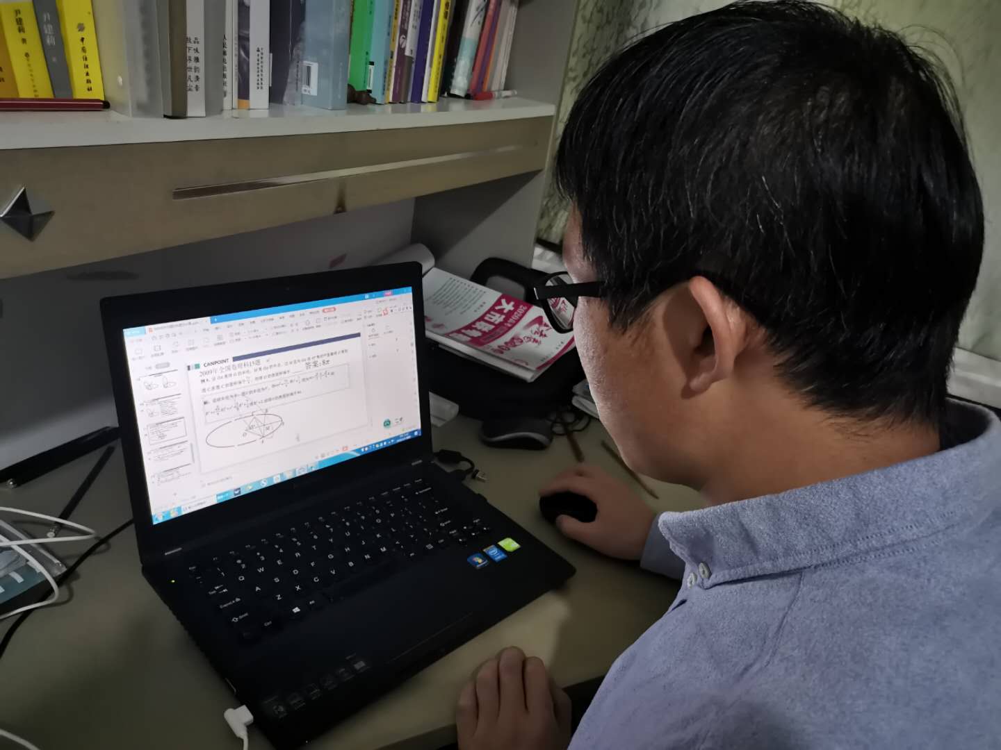 Zhang Sheng prepares for online courses in his study in Hohhot, north China's Inner Mongolia, Feb.25, 2020. (Photo provided to Xinhua)