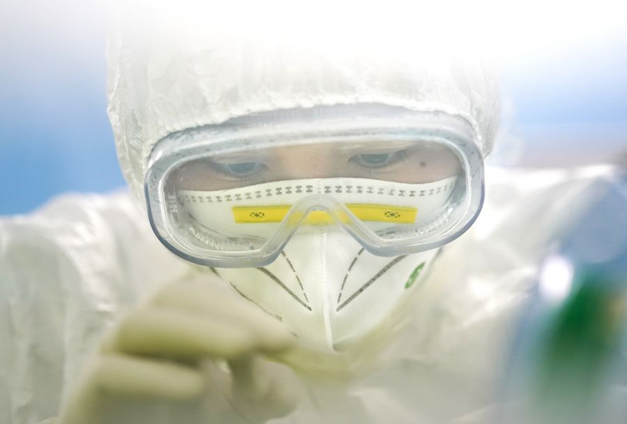 A staff member works in a laboratory in Wuhan, central China's Hubei Province, Feb. 13, 2020.(Xinhua/Cheng Min)