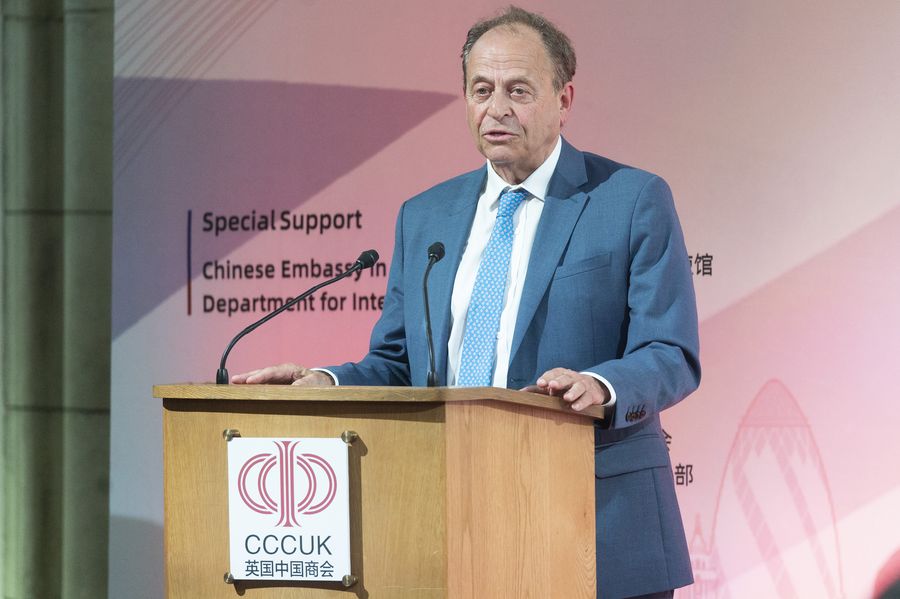 File photo shows chairman of the 48 Group Club Stephen Perry addressing the 2nd China-UK Economic and Trade Forum in London, Britain, June 26, 2019.(Xinhua/Ray Tang)