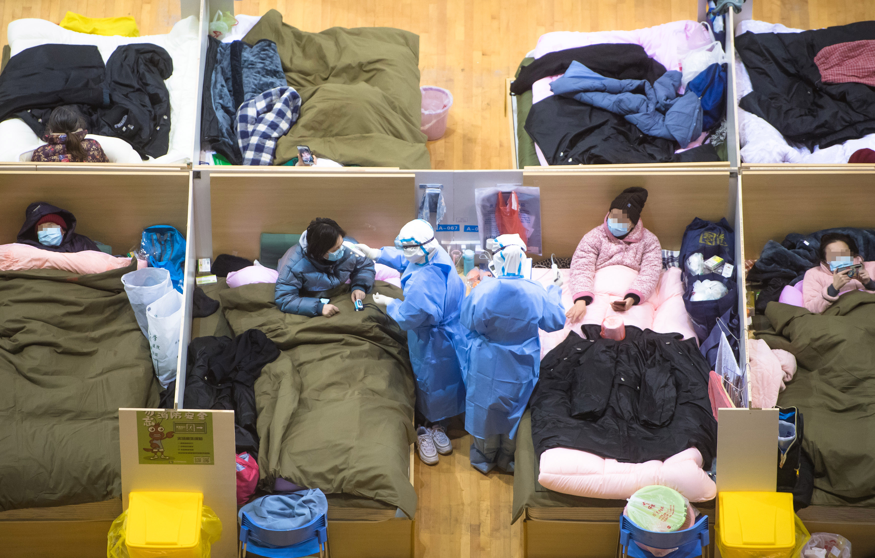 The interior view of the temporary hospital converted from Wuhan Sports Center in Wuhan. (Xinhua/Xiao Yijiu)