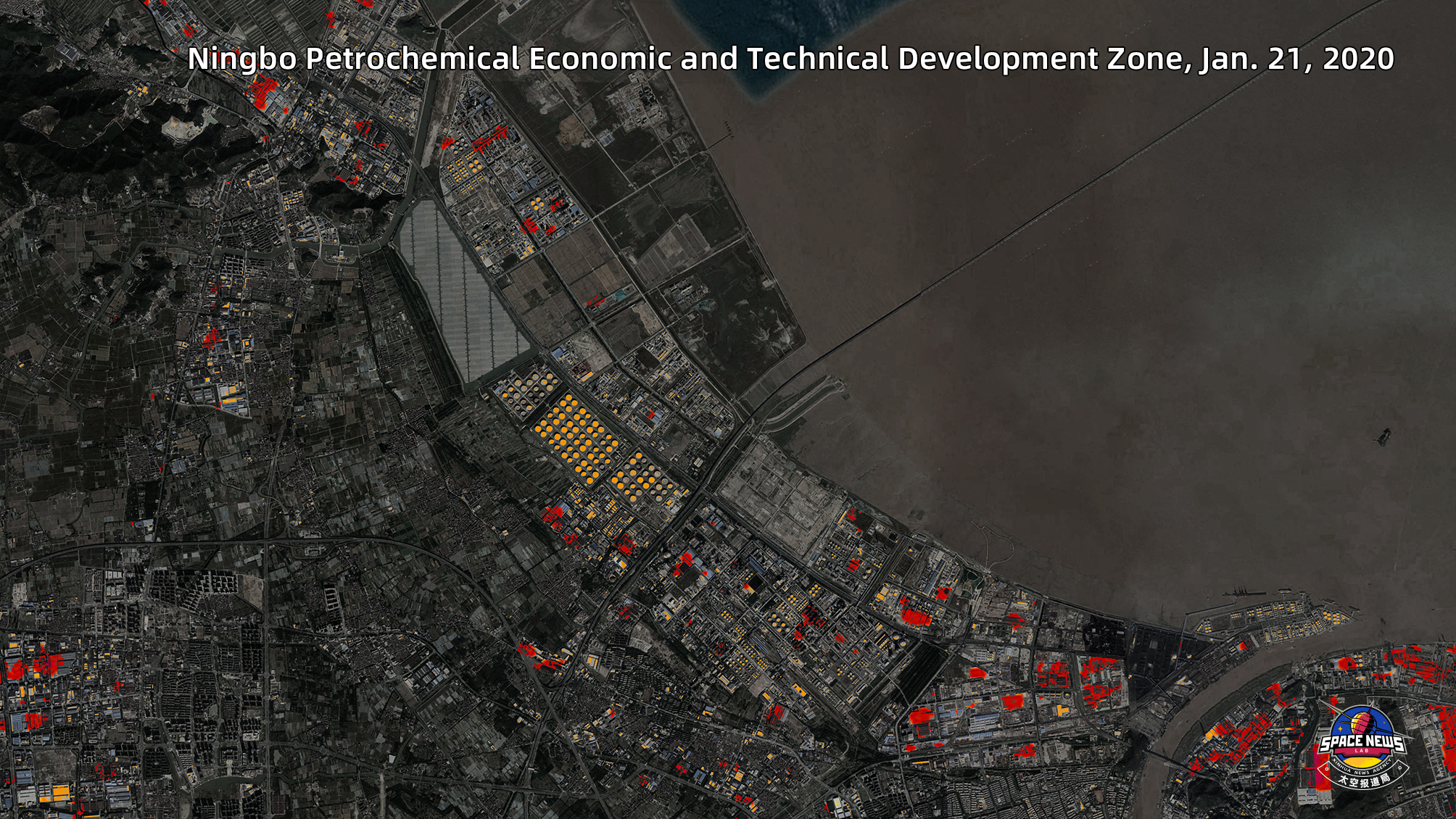Satellite image of the Ningbo Petrochemical Economic and Technical Development Zone in Ningbo, Zhejiang Province, on Jan. 21, 2020.