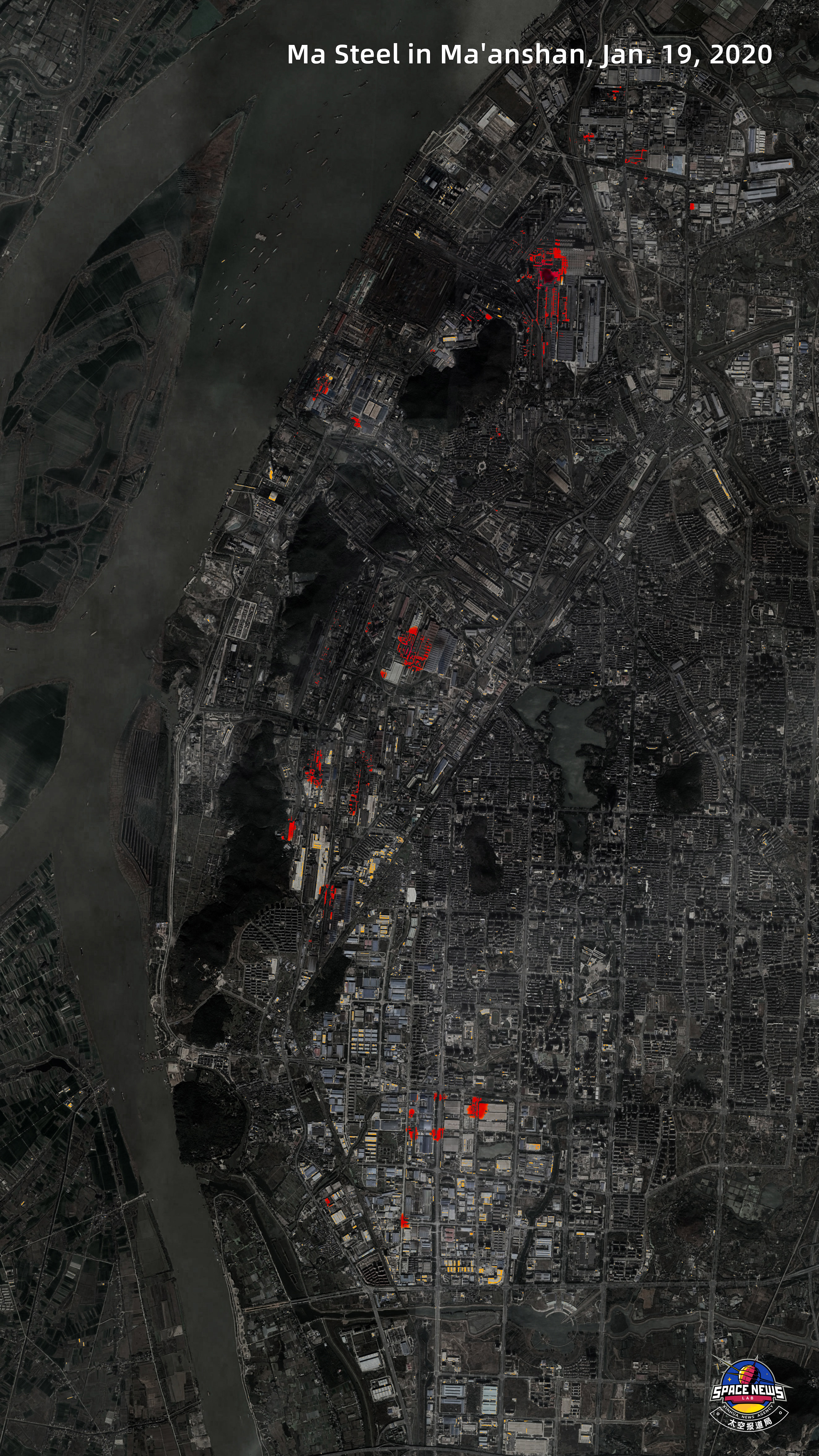 Satellite image of the iron and steel giant Ma Steel in the city of Ma'anshan, east China's Anhui Province, Jan. 19, 2020.