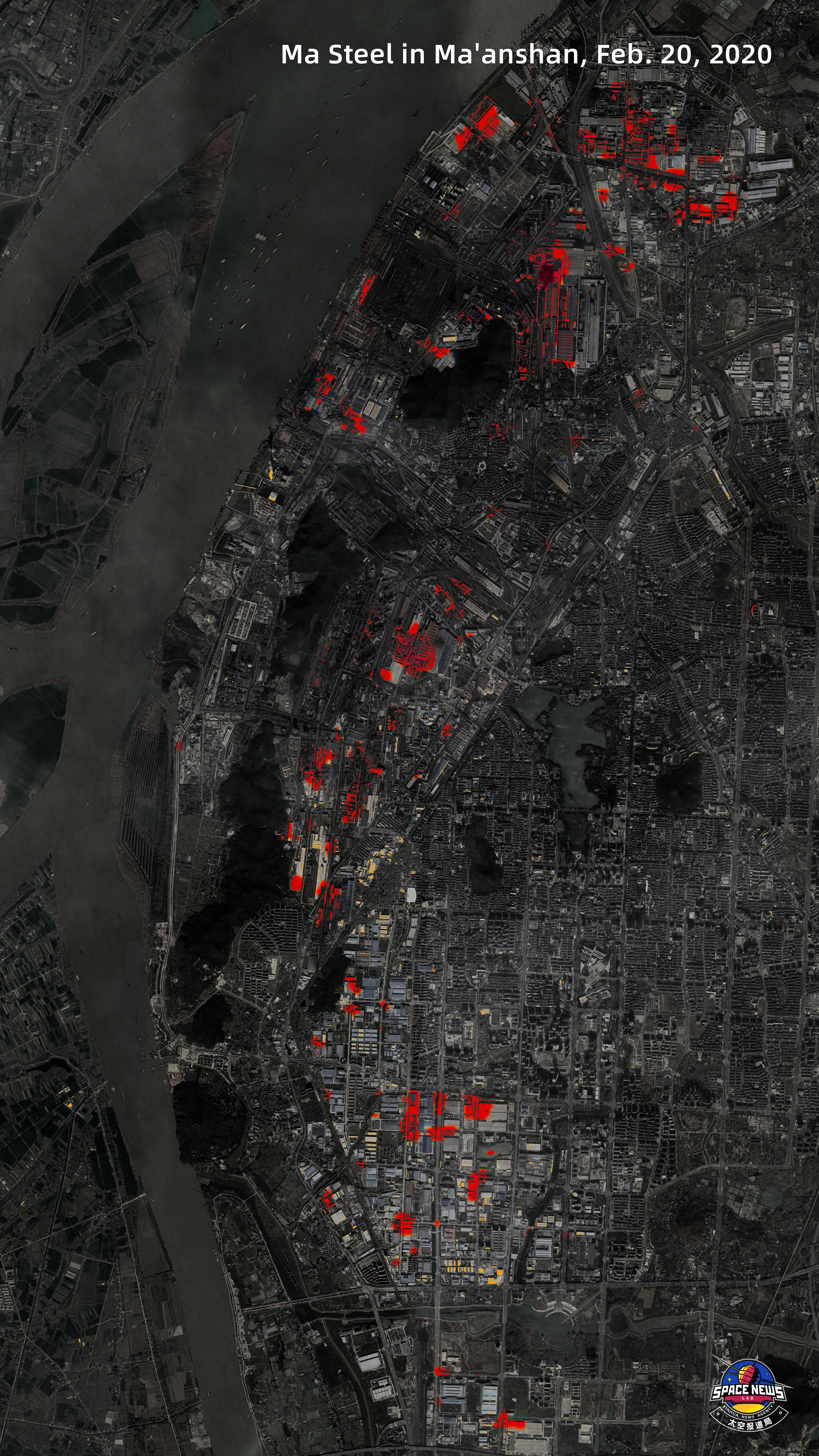 Satellite image of the iron and steel giant Ma Steel in the city of Ma'anshan, east China's Anhui Province, Feb. 20, 2020.