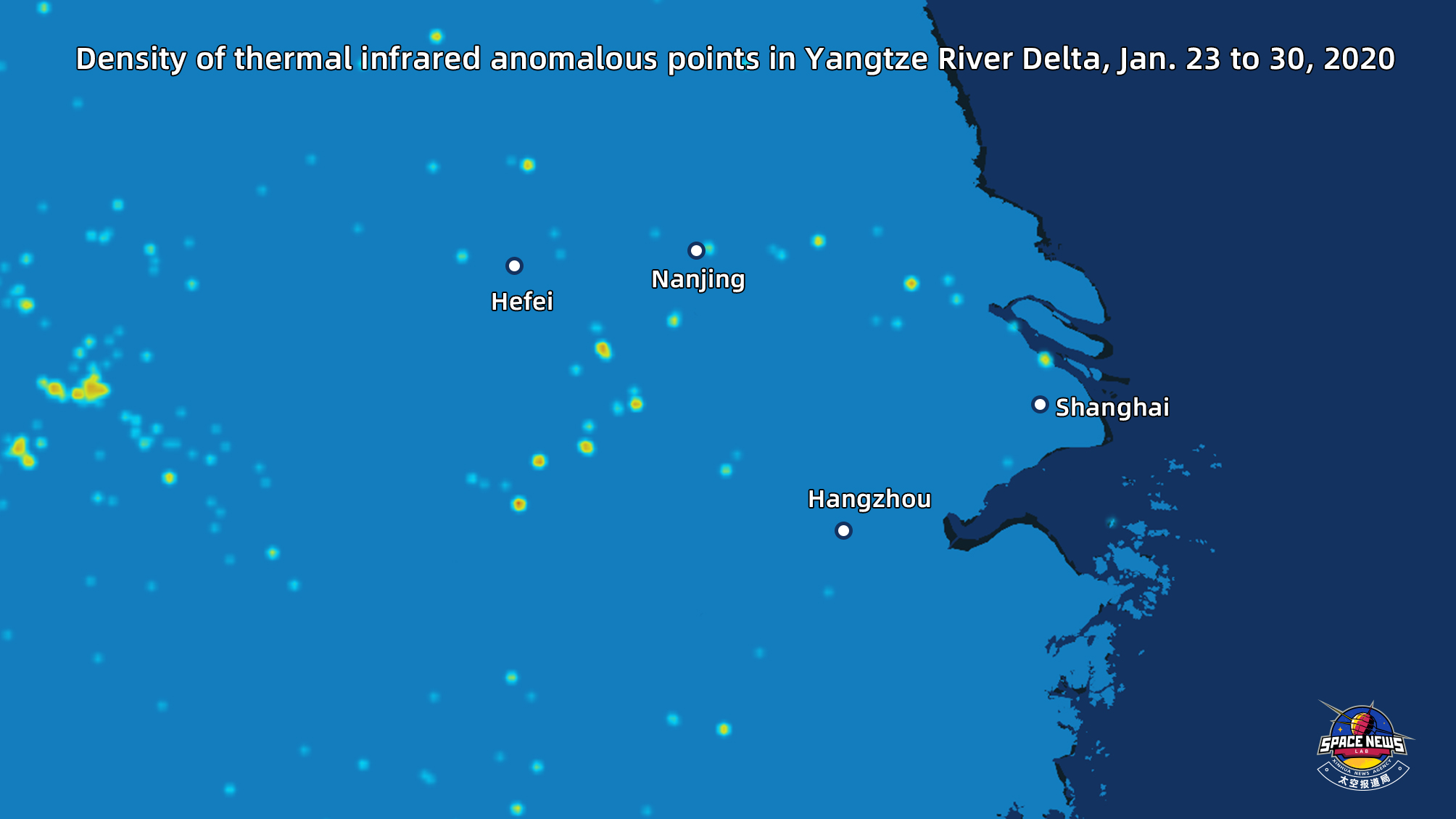Satellite image shows the density of thermal infrared anomalous points in Yangtze River Delta during the period from Jan. 23 to 30, 2020.