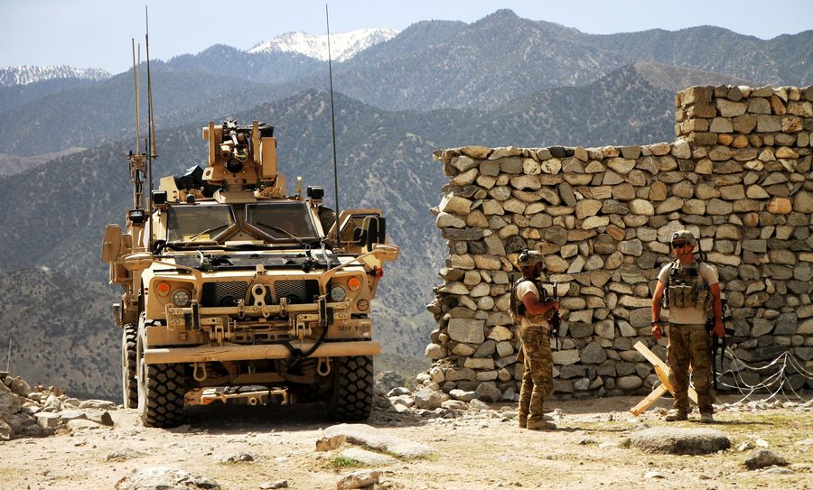 U.S. soldiers stand near a U.S. bombing area in Achin district of Nangarhar province, east of Afghanistan, April 15, 2017. (Xinhua\Rahman Safi)