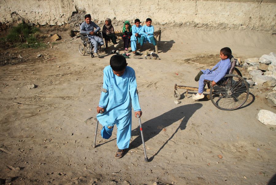 Photo taken on Feb. 22, 2020 shows disabled children in Surkh Rod district of Nangarhar province, eastern Afghanistan. The UN Assistance Mission in Afghanistan (UNAMA) has documented more than 10,000 civilian casualties in 2019, of these more than 3,400 had been killed, said a report of the body released. (Photo by Saifurahman Safi/Xinhua)
