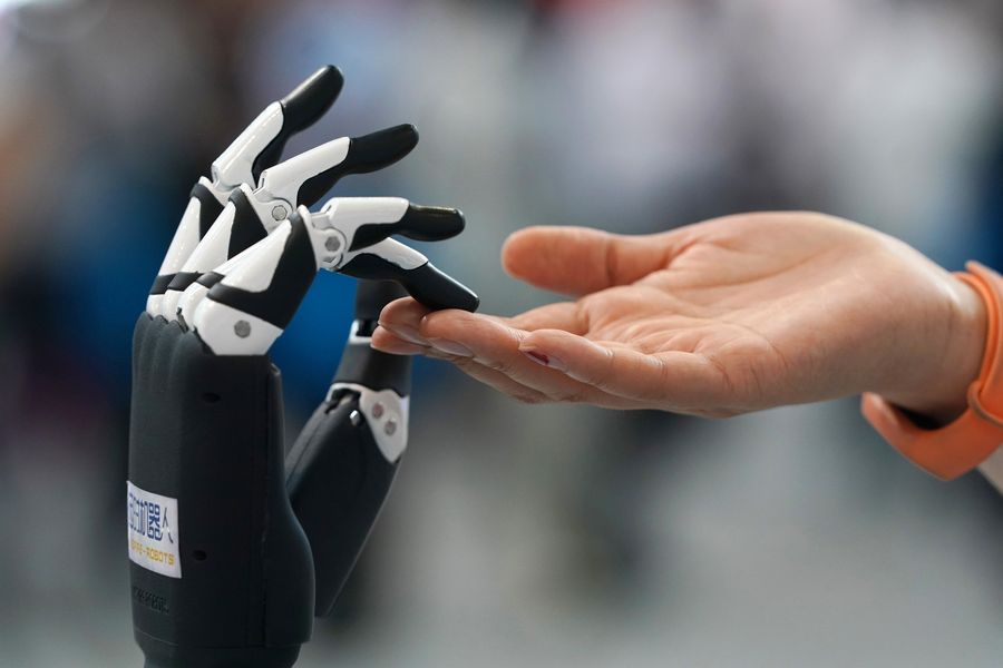 An exhibitor demonstrates a robot in an exhibition held during the national mass entrepreneurship and innovation week in the Zhongguancun National Innovation Demonstration Zone in Beijing, capital of China, June 13, 2019. (Xinhua/Ju Huanzong)