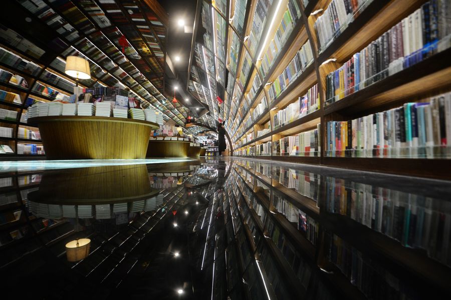 A reader selects books at Zhongshuge Bookstore in Yangzhou City, east China's Jiangsu Province, Feb. 17, 2018. (Xinhua/Meng Delong)